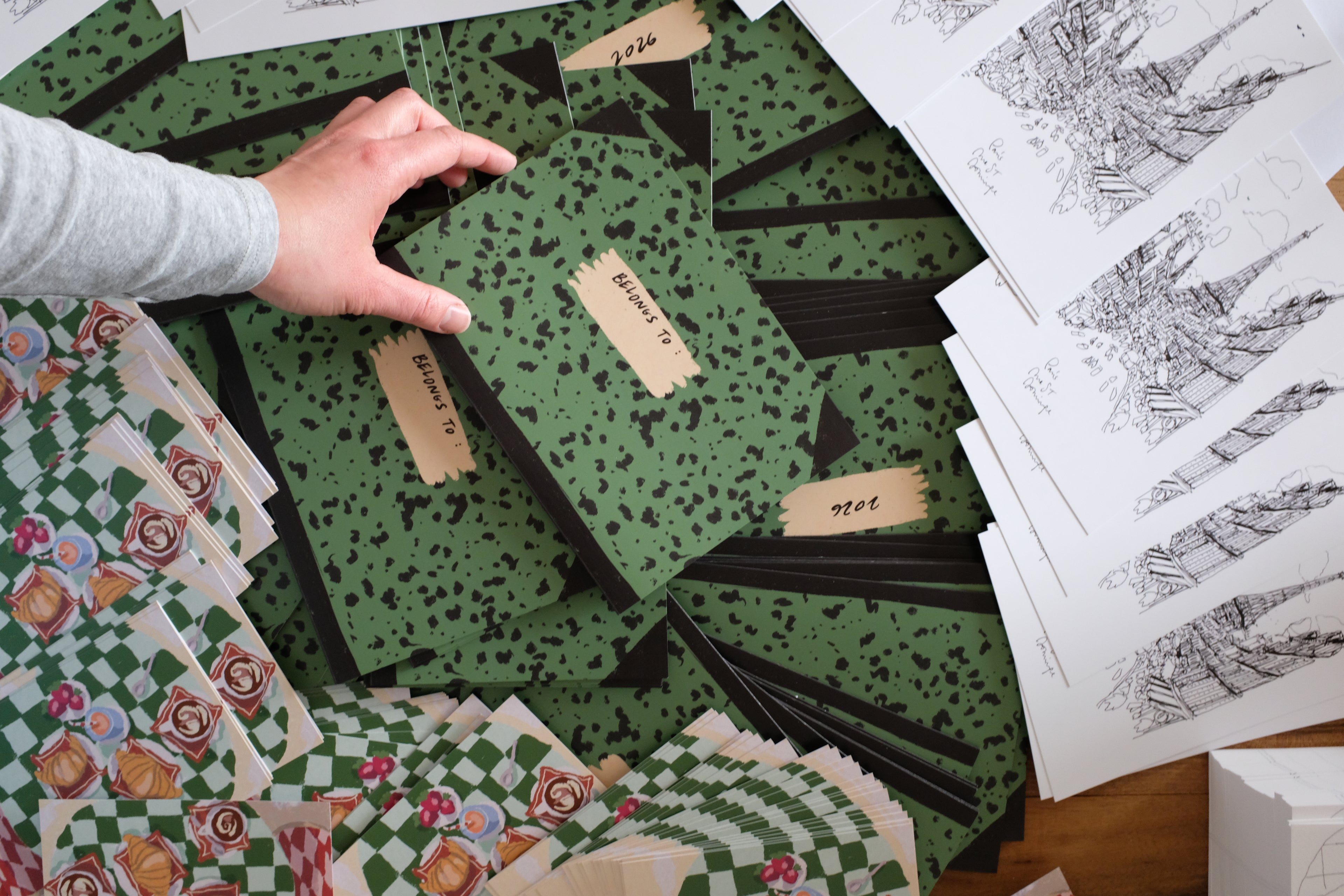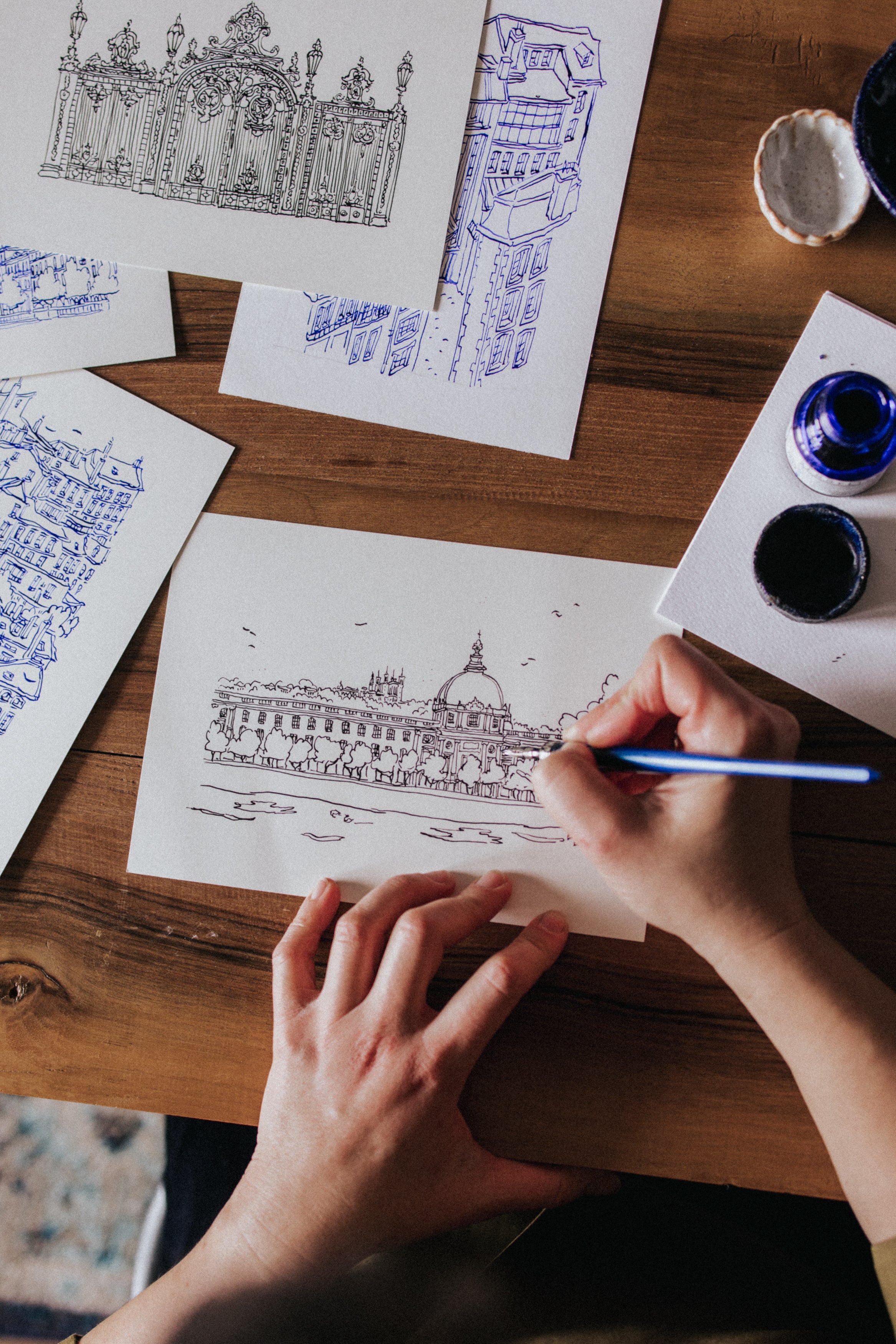 Toutes les créations sont uniques et entièrement fabriquées à la main par Emilie. La production change tout au long de l’année, les supports et les techniques de dessin peuvent varier.